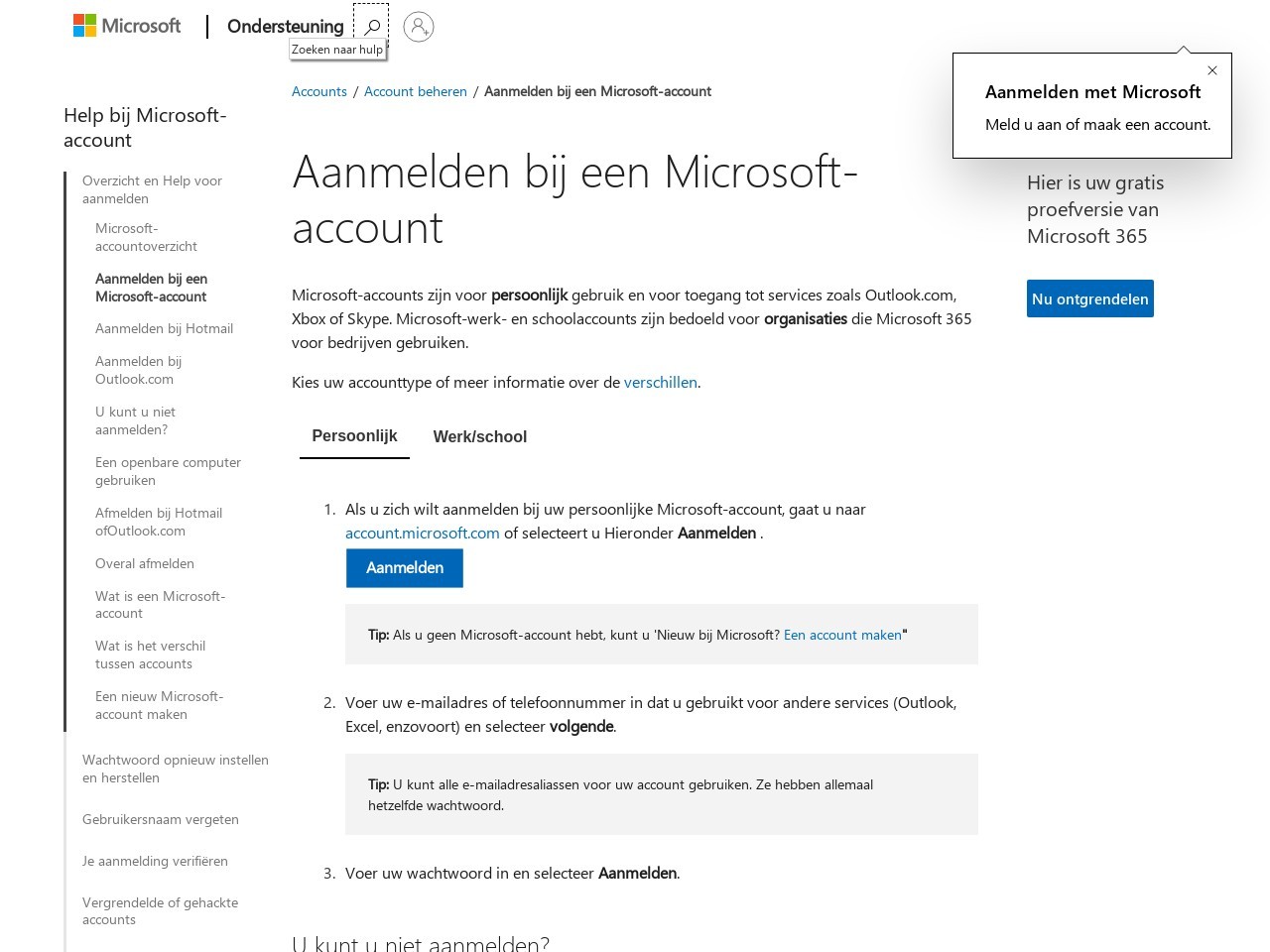 Inloggen bij Op Microsoft Account