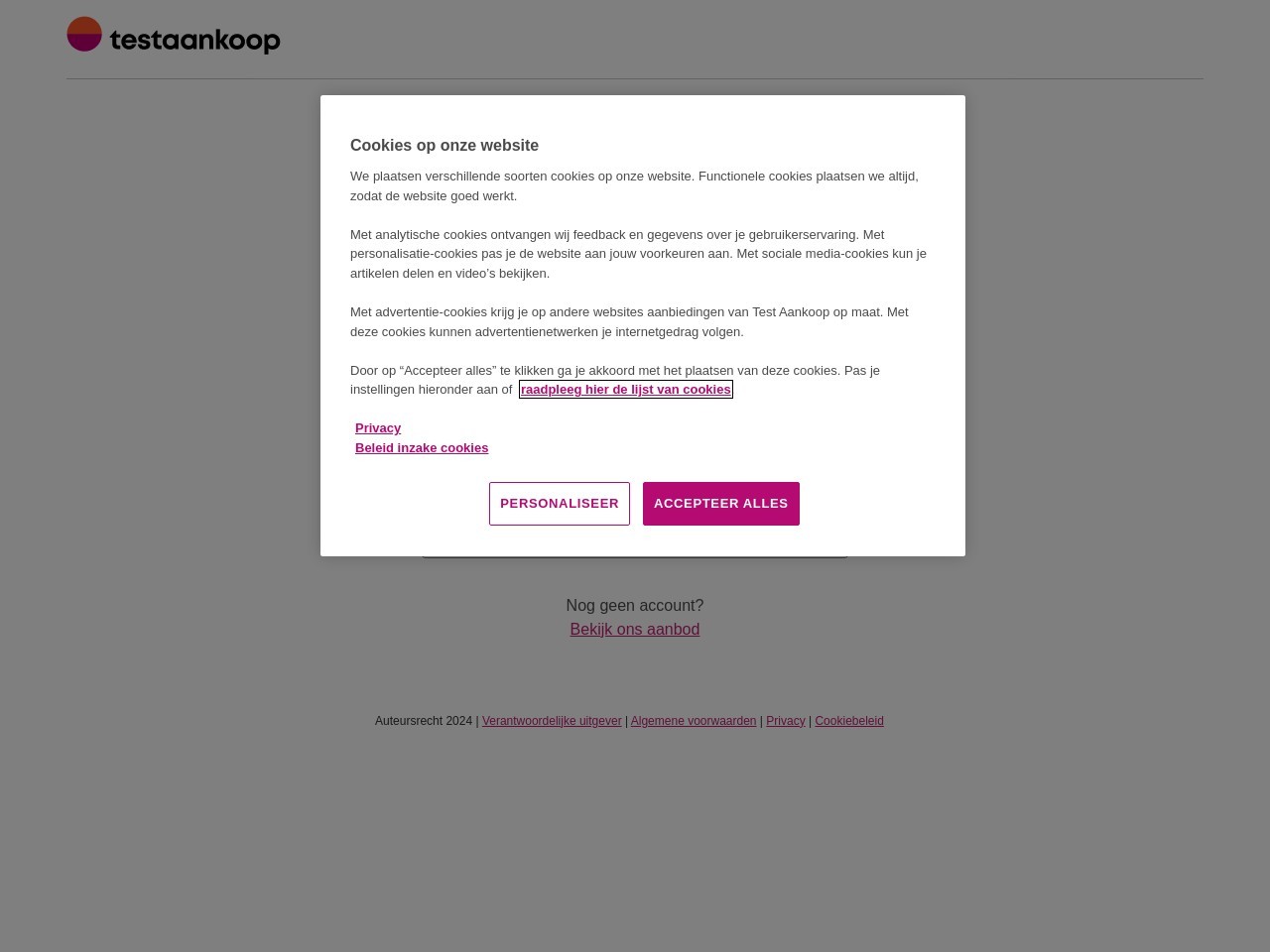 Inloggen bij Test Aankoop