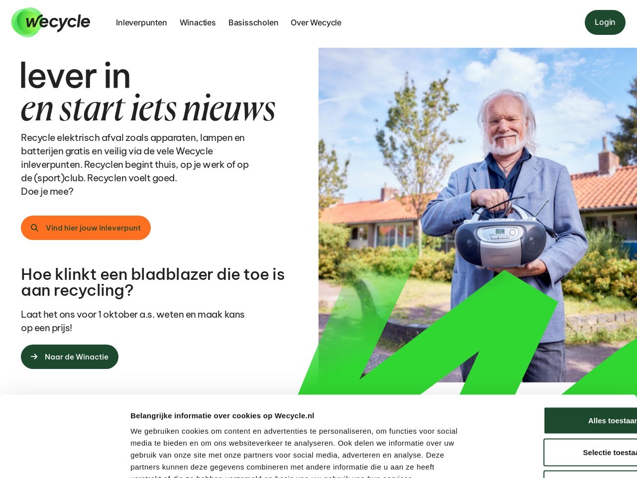 Wecycle is een organisatie die zich inzet voor het verantwoord verwerken van afgedanken elektronica. Het doel van Wecycle is om ervoor te zorgen dat gebruikte elektrische apparaten en verlichting op een duurzame manier worden ingezameld en gerecycled. Door deze apparaten een nieuw leven te geven, vermindert de organisatie de belasting op het milieu en draagt ze bij aan de circulaire economie. Of het nu gaat om oude televisies, computers of batterijen, Wecycle zorgt ervoor dat deze producten niet op vuilnisbelten belanden, maar op een veilige en verantwoorde manier worden verwerkt.